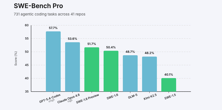 SWE 1.6 reflects how we think about building AI that actually works in practice - not just on benchmarks, but in the moment-to-moment experience of using it.